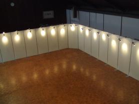 EZフレームパネルにクリップライトを使用し、即席展示会場が出来ます。L時、T時、十字、角度の付いた色々なレイアウトが可能。